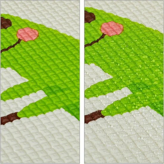 – Waterafstotende speelmat die binnen een mum van tijd schoon is