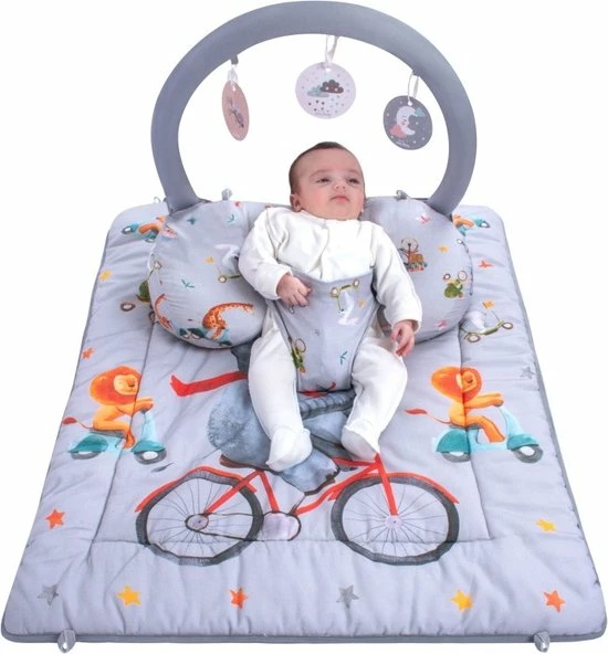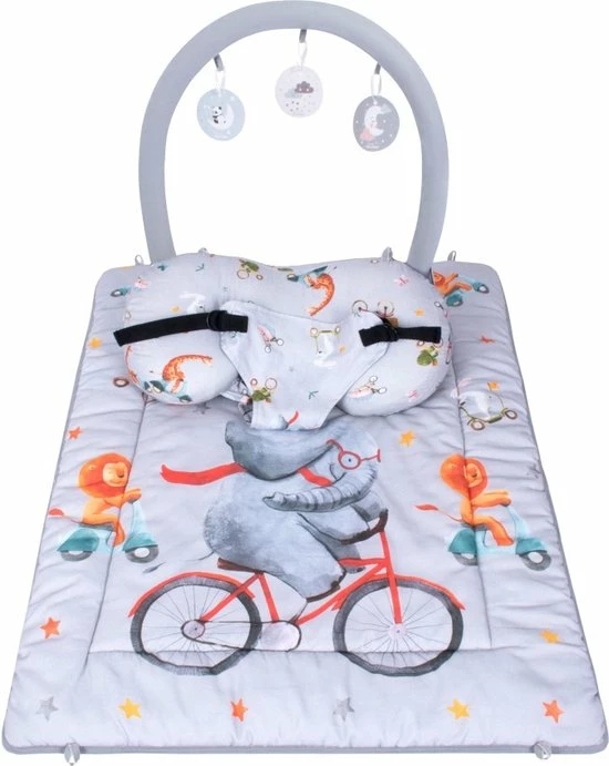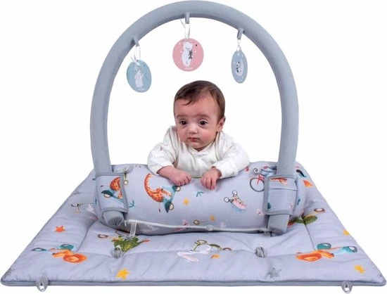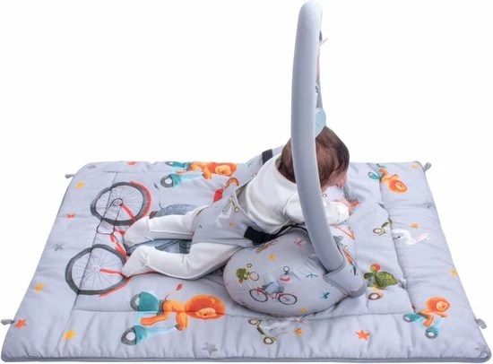 Het is goed voor je kleintje om regelmatig even op de buik te liggen. Door het steunkussen kan jouw kleine in alle comfort spelen tijdens buikspeeltijd. Het steunkussen zit niet aan het speelkleed bevestigd waardoor je deze gemakkelijk kan verwijderen. Daarnaast zit er een tuigje met een verstelbare veiligheidsgordel aan. Hierdoor zorg je dat jouw kleintje in de juiste positie blijft liggen.
