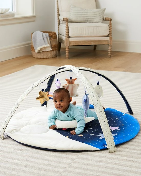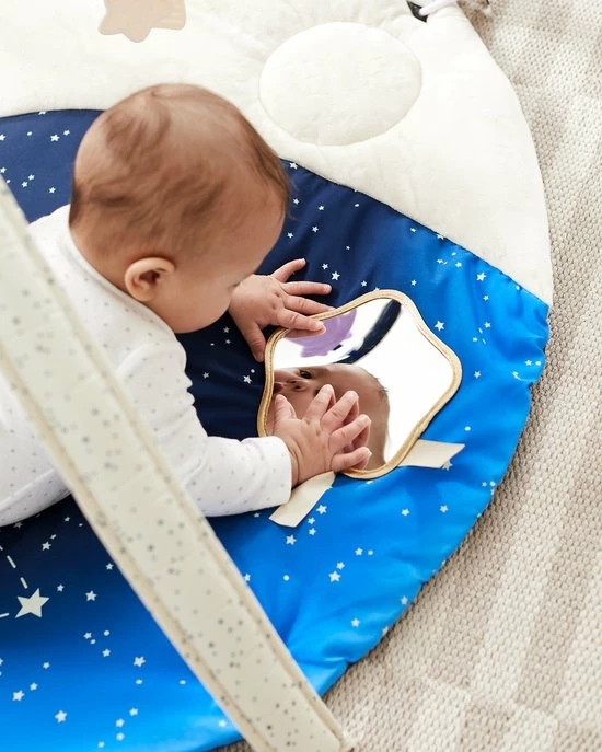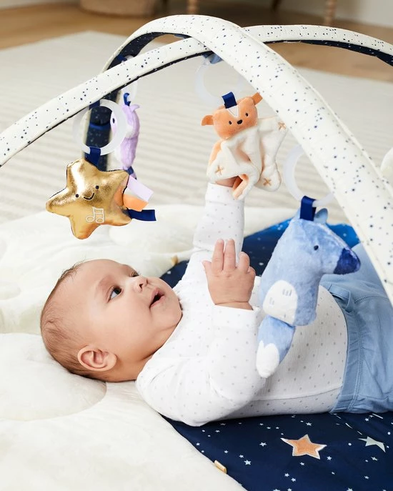 Breng spelen naar nieuwe hoogten (en niet te vergeten sterrenstelsels) met onze Celestial Dreams-activiteitenmat. Er valt zoveel te ontdekken voor baby’s tijdens deze reis door de sterren, waaronder een spiegel, pieper en andere verrassingen om de zintuigen te prikkelen.