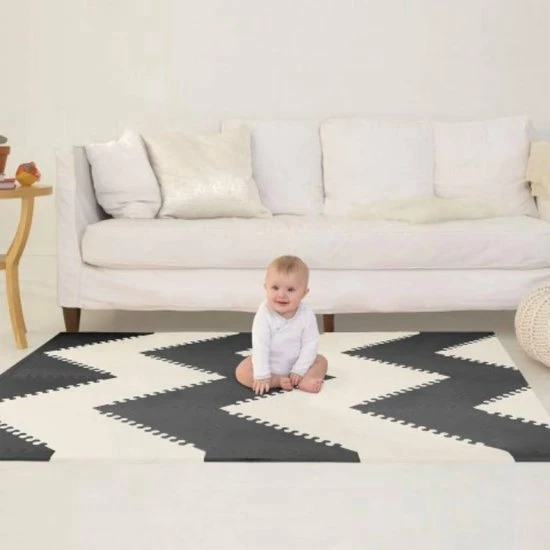 De Skip Hop Geo puzzelmat is van lekker zachte foam, zodat je kindje er fijn op kan spelen. De rustige kleuren staan prachtig in de huis- of babykamer. In totaal bestaat de mat uit 40 driehoeken en 32 randstukken. Je kunt de mat vierkant maken, maar ook rechthoekig. Ben je het patroon beu, dan puzzel je gewoon een hele nieuwe mat in elkaar voor een andere look!