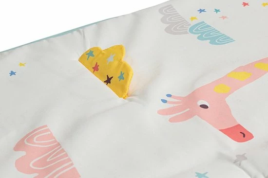 - Het Speelkleed ligt is zacht dankzij de zachtevulling. Liggend op de rug of op de buik kan je kindje de wereld ontdekken, wat goed is voor de ontwikkeling van de buik en nekspieren.