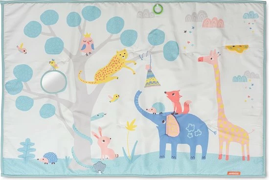 - Je kindje kan kruipend en rollend de wereld ontdekken op dit extra grote speelkleed of gewoon even lekker liggen en genieten van wat er allemaal in de jungle gebeurd.