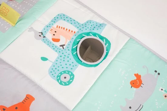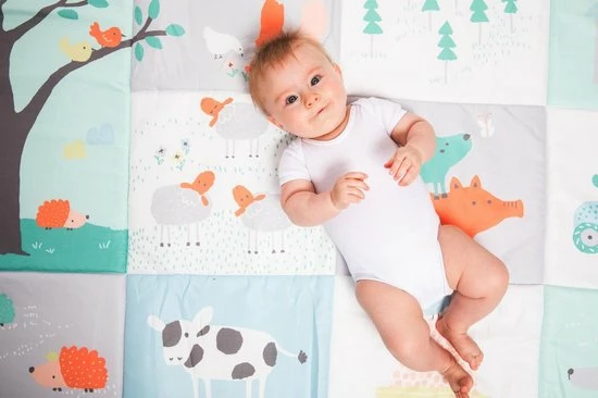 Je kindje kan kruipend en rollend de wereld ontdekken op dit grote speelkleed of gewoon even lekker liggen en genieten van wat er allemaal op de boerderij gebeurd.