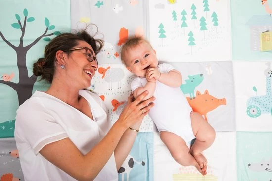 Dankzij het grote formaat kan je er ook samen met je baby op relaxen en spelen.Liggend op de rug of op de buik kan je kindje de wereld ontdekken, wat goed is voor de ontwikkeling van de buik en nekspieren.