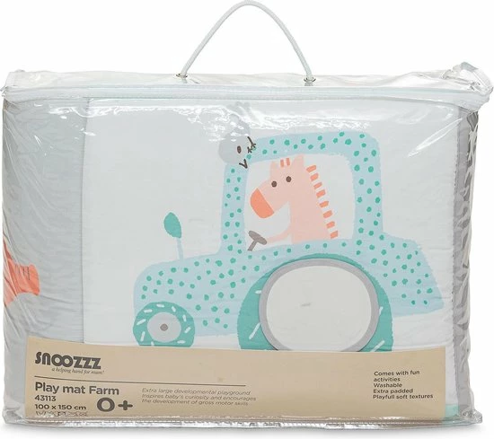 Het Snoozzz speelkleed mag niet ontbreken bij de babyuitzet. Met de boerderij speelmat van Snoozzz maak je alle ouders en baby’s blij. Het is het perfecte kraamkado waar (aanstaande) ouders heel veel en lang plezier aan beleven.