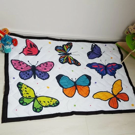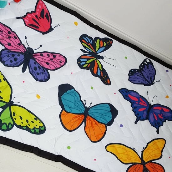 Speelkleed met gekleurde vlinders design van het trendy merk LiefBoefje. Een groot luxe speelkleed met een extra zachte vulling van foam voor comfortabel- en langdurig speelplezier. Deze baby speelkleden van LiefBoefje zijn ook ideaal als uw baby begint te kruipen. Niet onbelangrijk zijn de vele leuke designs waaruit u kunt kiezen, alle speelkleden bevatten een haarscherp design.