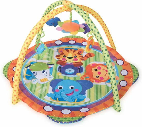 Vermaak je kindje urenlang met dit superleuke speelkleed van het merk Lorelli! Het kleurrijke speelkleed is voorzien van 2 speelbogen, met daaraan 5 afneembare speeltjes. De felle kleuren en hangende speeltjes dagen jouw kindje uit om te grijpen en vastpakken, wat de hand- en oogcoördinatie stimuleert. Laat je kindje kennis maken met de mooiste safari dieren!