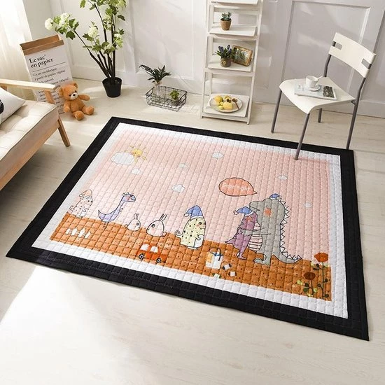 De toplaag is van polyester materiaal waardoor het speelkleed ontzettend stevig is. Over het gehele design is een stiksel aangebracht zodat het foam goed op zijn plek blijft zitten. De zijkanten van het baby speelkleed zijn extra verstevigd tegen slijtage. De onderzijde van het speelkleed heeft een anti-slip laag zodat deze ook op een gladde vloer goed blijft liggen. Tevens is het mogelijk om de speelkleden ook buiten te gebruiken op het gras als picknickkleed of op het strand.