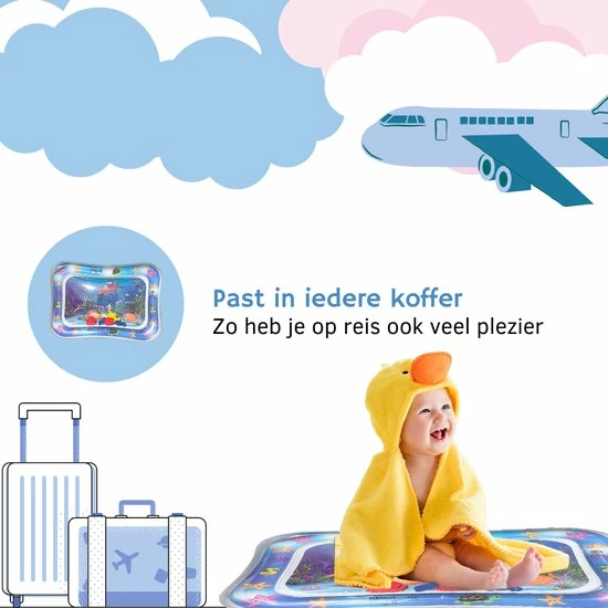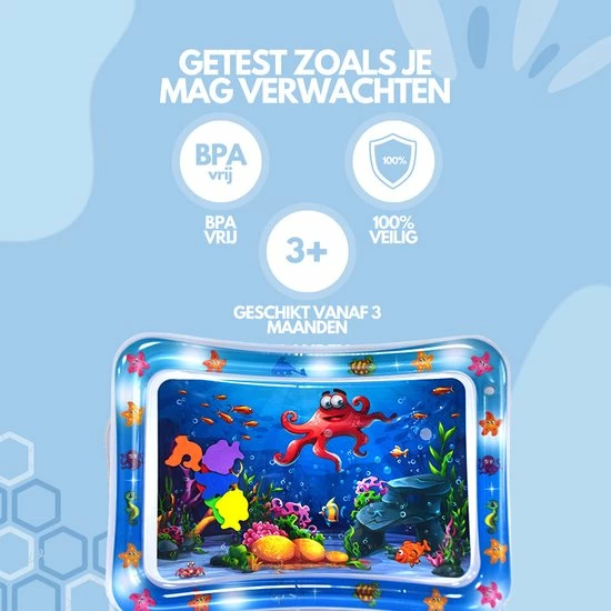 Let op: Controleer voor gebruik de waterspeelmat op eventuele lekkage. Wij adviseren om dit te doen in de badkamer of buiten, waar geen kans is op waterschade.