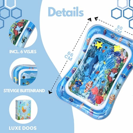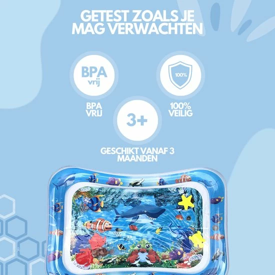 Let op: Controleer voor gebruik de waterspeelmat op eventuele lekkage. Wij adviseren om dit te doen in de badkamer of buiten, waar geen kans is op waterschade.