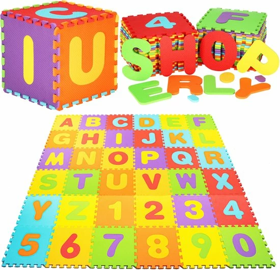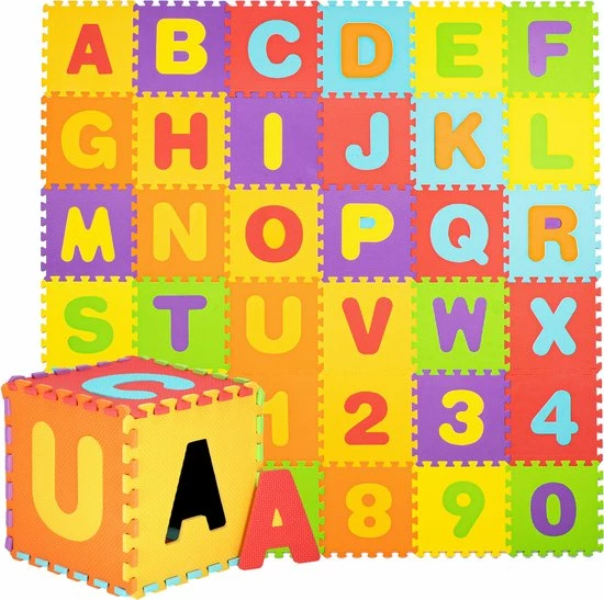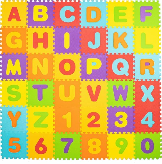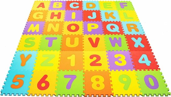 Kinderen vinden deze speelmat gegarandeerd leuk om op te spelen! De vierkante mat bestaat uit 36 stukken van schuimstof. Iedere mat heeft een eigen letter of cijfer waar uw kind tijden plezier van heeft. De onderhoudsvriendelijke kruipmat heeft bovendien een schok dempende functie dat goed van pas komt als je kinderen op de grond spelen!