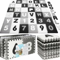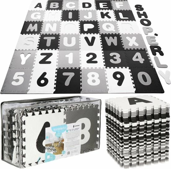 Kinderen vinden deze speelmat gegarandeerd leuk om op te spelen! De vierkante mat bestaat uit 36 stukken van schuimstof. Iedere mat heeft een eigen letter of cijfer waar uw kind tijden plezier van heeft. De onderhoudsvriendelijke kruipmat heeft bovendien een schok dempende functie dat goed van pas komt als je kinderen op de grond spelen!