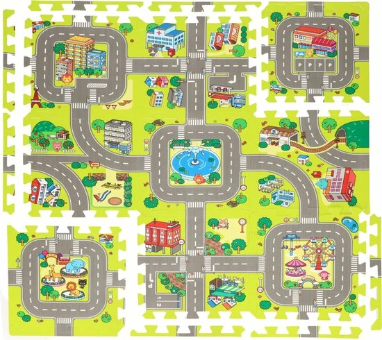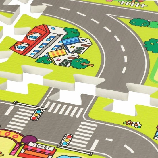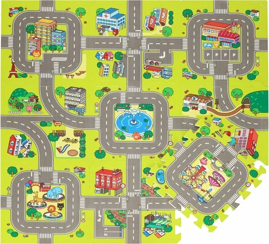 Kinderen vinden deze kleurrijke speelmat gegarandeerd leuk om op te spelen! De vierkante mat bestaat uit 9 matten van schuimstof die samen een kleurrijk beeld vormen. Iedere mat heeft een eigen design waar uw kind tijden plezier van heeft. De onderhoudsvriendelijke kruipmat heeft bovendien een schok dempende functie dat goed van pas komt als je kinderen op de grond spelen!