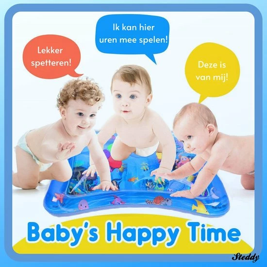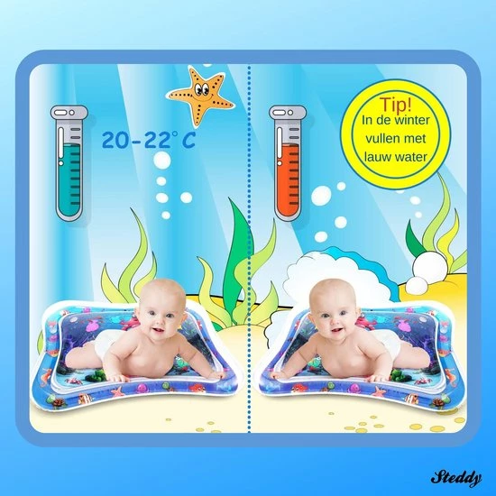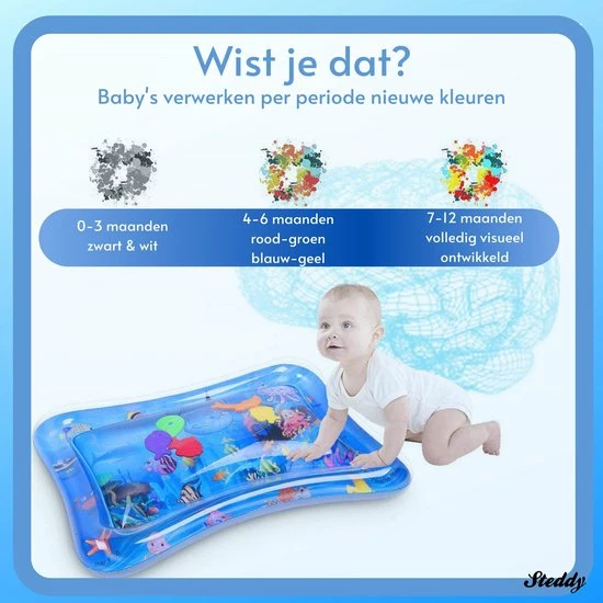 Deze watermat biedt hier de perfecte oplossing voor. Doordat de mat ook geschikt is om met warm water te gebruiken, is dit ideaal in plaats van op een koude harde vloer. Naar verloop van tijd gaat u merken dat uw baby in de gaten heeft dat er figuurtjes in drijven en zal hij/zij deze willen proberen te pakken.