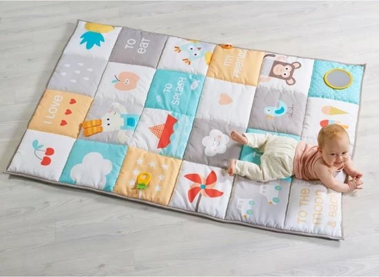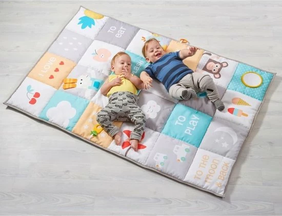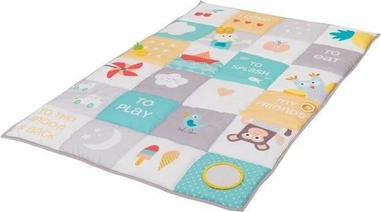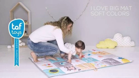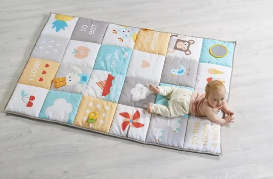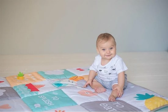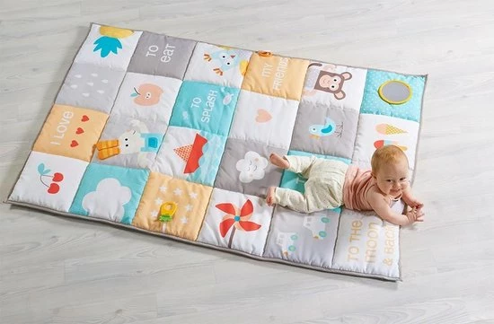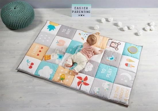 Deze volle, extra gevulde speelmat van Taf Toys is gemaakt in verschillende kleuren en heeft verschillende afbeeldingen en activiteiten die goed zijn voor de baby.