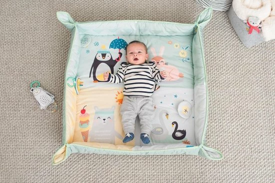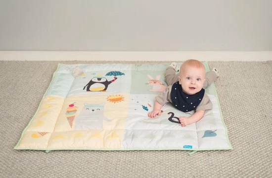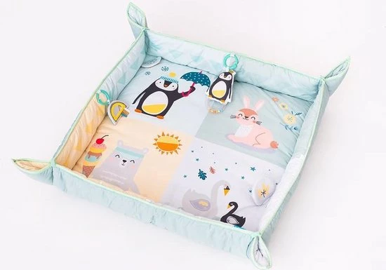 Deze North pole 4 seasons mat is een speelmat met mooie illustraties, speciaal ontwikkeld voor pasgeboren baby’s. Fase 1 (0-3m): opstaande randen creëren een veilige en geborgen omgeving voor je baby. Fase 2 (3m+): opengevouwen randen zorgen voor een grote speelmat (96x96cm). Mooie 4 seizoens illustraties stimuleren de ouder-kind interactie. Met twee afneembare, multifunctionele speeltjes, inclusief een babyveilige spiegel. Vanaf 0 maanden.