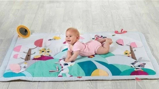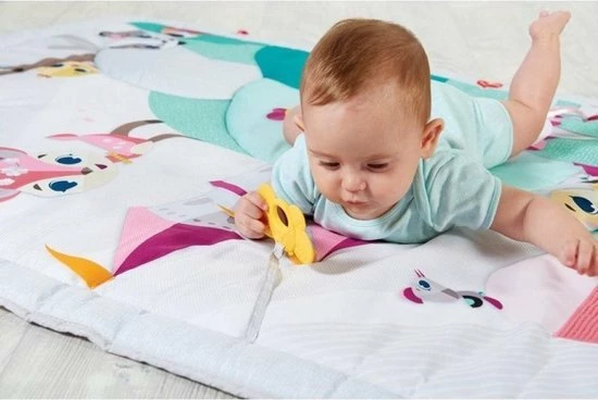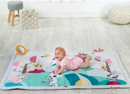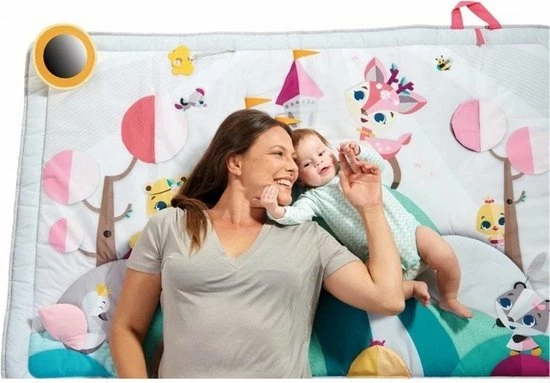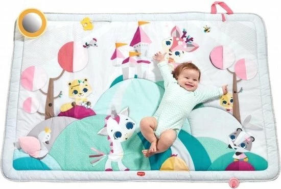De Tiny Princess Tales Super mat Developmental XL activiteitenmat speeltuin laat de fantasie van de baby tot bloei komen en bouwt tegelijkertijd essentiële vaardigheden op, het is niet nodig om te kiezen en te kiezen wanneer zowel stijl als ontwikkeling tegelijk plaatsvinden. De Super Mat is ontworpen met een contrasterend kleurenpatroon, dat niet alleen de visuele stimulatie van de baby stimuleert, maar ook een stijlvolle aanvulling is op elk huis. De Super Mat heeft, net als alle producten in de Tiny Princess Tales-collectie, een opvallend ontwerp dat speciaal is gemaakt om de ontwikkeling van het gezichtsvermogen van baby’s te stimuleren. De Super Mat is groot genoeg om zowel ouder als baby comfortabel te passen, voor onvergetelijke hechtingsmomenten. Een zacht handvat maakt het gemakkelijk op te vouwen en te dragen, en kan worden genoten thuis, op het strand of waar je je baby wilt vermaken.