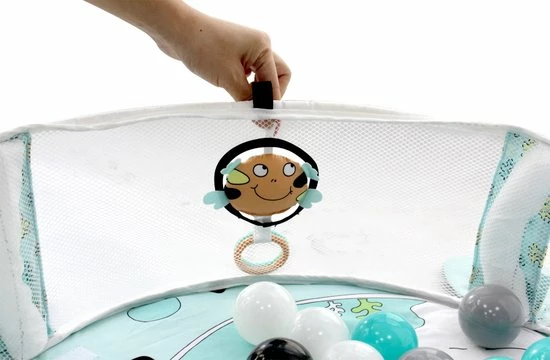 Fase 2. wanneer je kindje rechtop kunt zitten kun je de zijkanten van het speelkleed omhoog zetten, waardoor hij/zij zich zittend kan vermaken met de speeltjes aan de speelbogen. De 28 meegeleverde kleurige ballen zorgen voor een echt speelfestijn! De zijkanten zijn gemaakt van mesh stof, waardoor je je kleine goed in de gaten kunt houden.