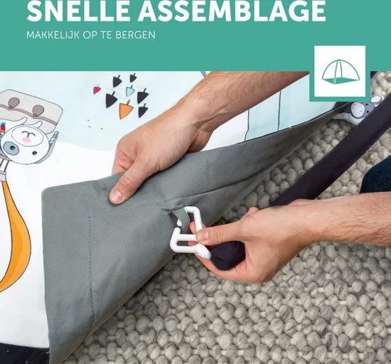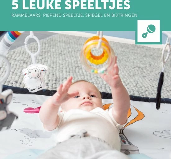 Door deze speeltjes leert je kindje ontdekken en dat helpt bij het ontwikkelen van de fijne motoriek.Het speelkleed is te gebruiken vanaf de geboorte. Is er een vlekje op het kleed gekomen? Geen probleem het kleed is wasbaar in de wasmachine. De speelbogen zijn afneembaar, zodat je ook kunt kiezen voor een los kleed. Door de afneembare speelbogen is het kleed tevens erg makkelijk op te bergen.